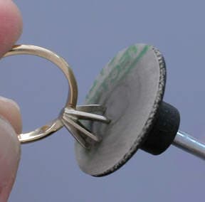5. The prongs are sanded flat on top by using 400 grit abrasive film on a flat disc.