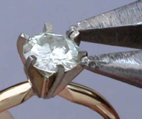 9. Bend the prongs over the gemstone by bending opposing prongs. IMPORTANT - Check to make sure the prongs and crown of the gemstone are in full contact. Make necessary adjustments if not.