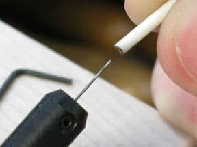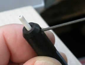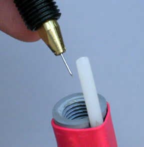 After the reshaping is done, the welding pencil is reassembled by placing the ceramic collar over the electrode.