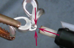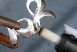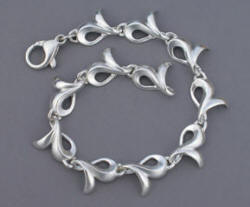 To demonstrate how pulse-arc welding performs on sterling silver, this bracelet was cast, finished and assembled without the use of a torch. The six links immediately adjacent to the clasp on the bracelet are made with a common sterling silver alloy and the other five are made using the new sterling silver alloy developed by Marc Robinson of ABI Precious Metals that contains platinum. This article highlights pulse-arc-welding techniques used for making this sterling silver bracelet.