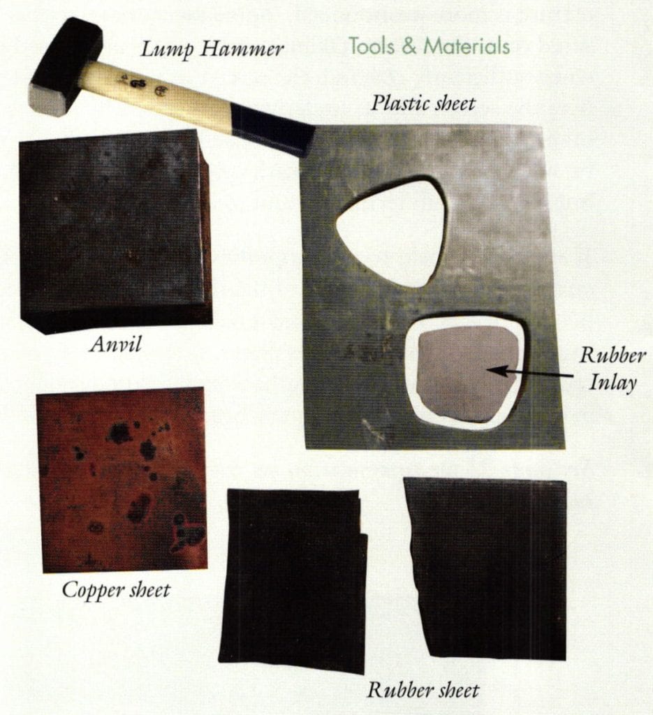 - "Sandwich" the items on a solid surface, I used the floor of my workshop in this order: plastic sheet I metal sheet I rubber sheet I anvil. Make sure the metal is larger than the form