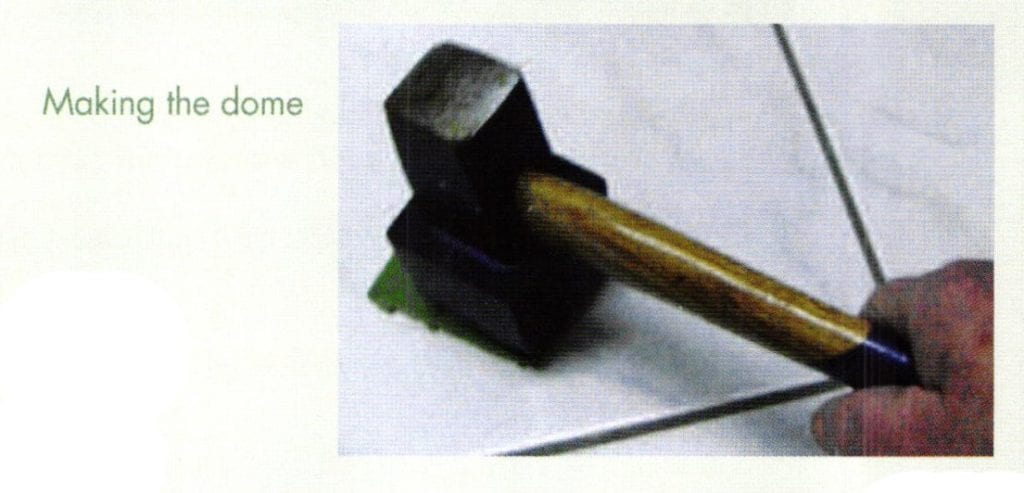 - Metal block about 8 x 8 cm, like a bench anvil, or a thick hardwood block. The anvil or the wooden block should be only l-2 cm larger, than the form you want to dome. If the block is too large, you lose a lot of the power of the hammer stroke.
