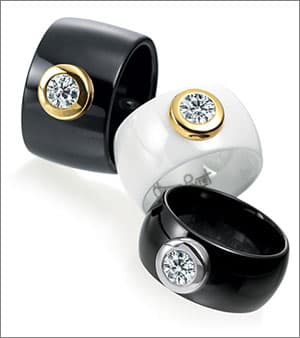 According to Perret, "the new generation is more willing and eager to consider materials other than precious ones for their jewelry." The steadily rising sales of Perret's ceramic bridal and fashion jewelry line are proof of this shift in mentality, particularly among the Gen Y set. "A lot of young consumers opt for my ceramic bridal pieces because they are cool," he says. "Their grandparents had gold bands, but they want something new and high-tech."