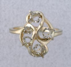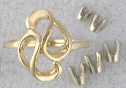 ![]() | Materials for this project include a 14-karat yellow gold ring remount (from Stuller in Lafayette, LA - stock number 5157) and various sized 14-karat white gold settings. |