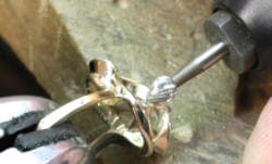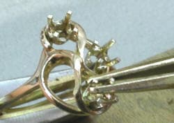 ![]() | Good contact between the setting and ring is essential for tack-welding and soldering. Prepare the pre-polished remount for assembly by notching the area where the head will be located using a ball or bud bur. |
