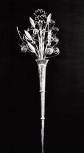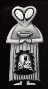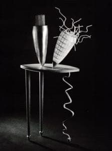 These people fit into the Post Modern movement, as I explained earlier. But it seems less an act of the artists than a fortuitous turn in the mainstream of art and design. In fact, many snicker at the label Post Modern for their work. Are these metalsmiths then looking towards the history of their craft for inspiration? Actually not. In fact, very few mention metalwork, contemporary or historical, in their list of influences. Most look at painting and sculpture of a certain kind—Chicago and New York schools, Joseph Cornell versus Louise Nevelson, or naives and primitives versus minimalists like Richard Serra. If craft is mentioned at all it is in the context of the California ceramic movement, ethnic art of Africa and American Indians or a whole range of ideas from theater to taxidermy, photography, architecture, cartooning, feminist art, nature . . . the list goes on and on.