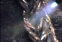 Karat gold is an alloy and the metals in the alloy melt at different temperatures. All gold solders list two temperatures, one is the melting temperature, and the other is the flowing temperature. When one alloy begins to melt you have reached the melting temperature, when all the metals in the alloy melt you have reached the flowing temperature. We use this to our advantage in this repair. Heat the solder until it melts but not so hot that it actually flows. It is in this state that we can use the solder. Because it has begun to melt it will fuse to the metal in the link, but because some of the alloy is not melted it will retain its shape and build up on top of the link.