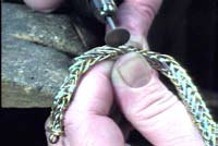 To repair the broken link, begin by using the point of a fine watchmaker's tweezers to spread the link open to regain the original round shape of the link. Then make sure that the link fits back together tightly. Select a piece of 14 karat yellow gold wire that will fit snugly inside the link.