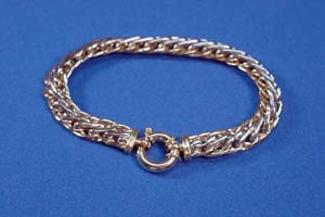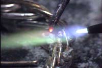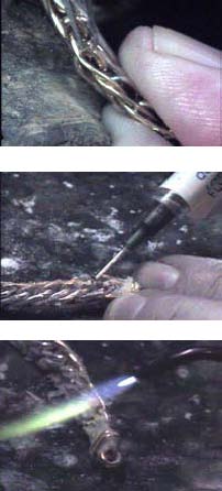On the link that is smashed flat, we're going to use solder to build it up. Throughout this project we are using 14 karat plum solder, if you used a repair solder on this bracelet the solder would tarnish in time and would not provide a satisfactory repair. By using plum solder it will not darken or tarnish as it is worn. So, much like an auto body repairman would use body putty to fill in dents on a car, we use the solder to fill in the dents on the hollow link.