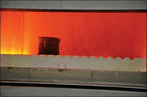 "The investment actually starts to steam," says Ego. "After pouring the flasks and vacuuming for two minutes, we let them sit out for one hour elevated from the surface, and in that time most of the RP material [is evacuated]. We put the flasks into the oven at 1,250°F/677°C for 30 to 45 minutes, then leave them in the oven until it cools to 600°F/316°C to complete our burnout procedure. The total process from pouring the investment to casting the flasks takes three hours max as opposed to about eight hours using the traditional lost-wax investing and burnout schedule we used to follow."