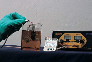 The second activation step is an acid dip. There are some good proprietary solutions on the market, but you can also use a solution of 10 percent sulfuric acid to 90 percent water. Remember to always pour acid into water while stirring; never pour water into acid.