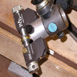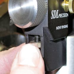 On either side of the layout assembly is a thumbwheel that locks in a spin detent that clicks every 10 or 15 degrees.