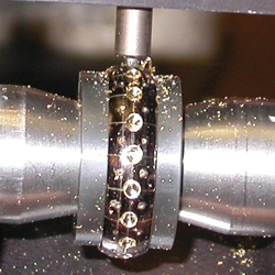 I then lined up the layout scribe with the edge of this circle and transferred the center marks around the circumference of the ring.