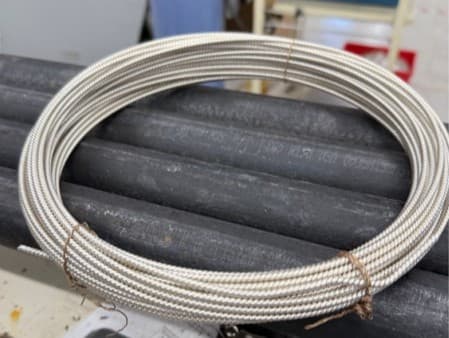 Turning now to wire, Anderson explained that they are able to create jump rings of various shapes and diameters by inserting a coil into a specialized machine. As the coil is fed through the device, a blade slices through the top, creating individual loops. Traditional round jump rings are made, as well as oval and triangular shapes.