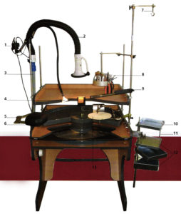 TIM Systems Ltd. Developed the time saving work bench "Rota Bench Plus". An extensive range of accessories enables the bench to be most effective for each task. Multiple tasks can be managed parallel in a logical manner thanks to helpful accessories of the Rota Bench system. With a rotating tray the separation of precious metals dust and other components are a lot easier to use and become more efficient and therefore cost effective. Due to this efficiency it allows more time for the worker to create in a more organised manner. To maximize the comfort for the jeweler the workbench is height adjustable. The bench top can be adjusted back and forward also up and down, to suit the individual person.
