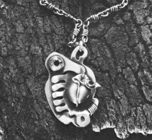 From the Navajos, he derived his use of heavy-gauge silver, the crude feeling of his bezels. One can see the primitive, as well, in his rough finish, the large scale and heft of his work, in the "wrapping" of stones with metal wire and in those staples of aboriginal adornment: shells, tusks and quills. Thus, the tableaux of the modern consciousness—The amorphous creature, the polymorphous psyche, the frieze of matter—are the first stratum in Kramer's underground. Beneath it lay a vast substructure—the primitizing tendency—which, like bedrock, would support the edifice of modern art.