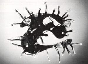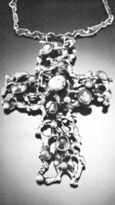 Embryos. Semi-madness. Blue air. Germs. Schizophrenic dancers. To our sensibility, so accustomed to the glossy presentation and impeccably "correct" sheen of the image-object, this is lurid stuff. Are these the rumblings of a new art form, or a facile bit of kitsch? The answer lies in that remote moment when "contemporary jewelry" was new—before the way had been smoothed by thousands of rolls of Ektachrome, sheathes of resumes, a hundred juries, before it had been captured, tamed and administrated.