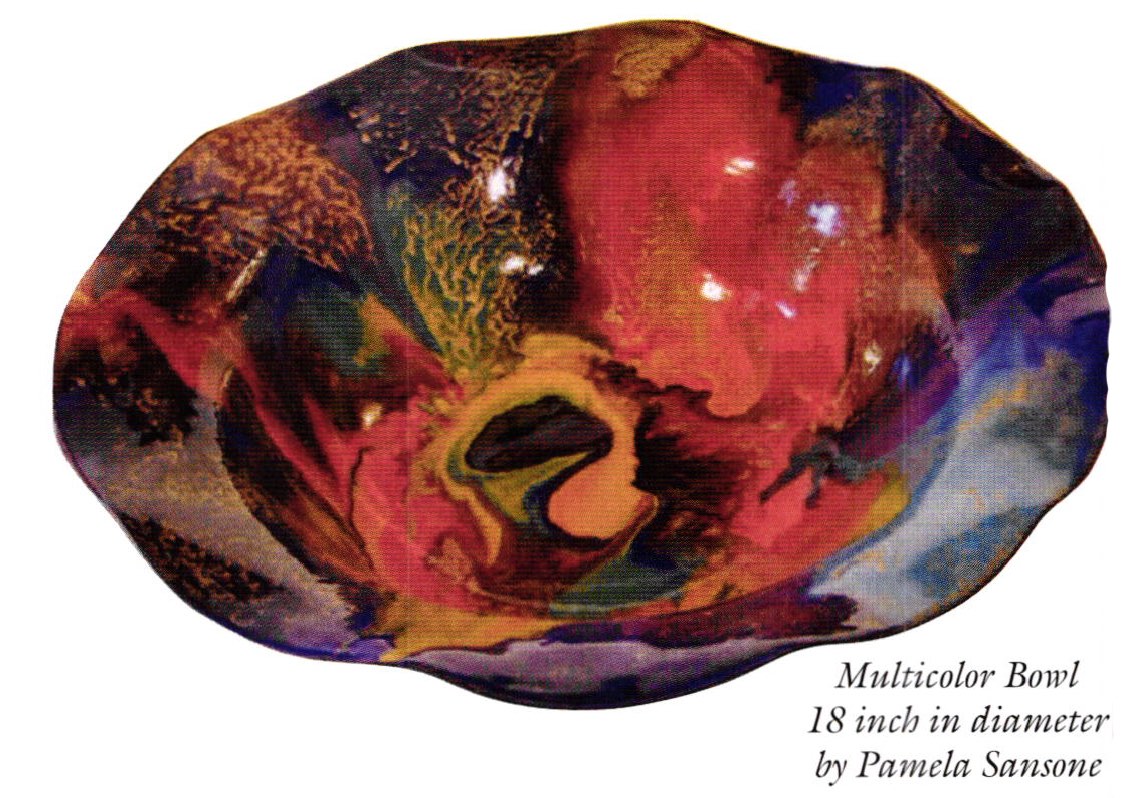 "Prior to moving to the Central Coast near Santa Barbara, Pamela's part time enameling turned into a full time endeavor. She now creates most of the bowls, plates and various other shapes. I create some as well, although I concentrate on my enamel wall pieces. We decided that instead of supplying other galleries with our work, we would open our own studio /gallery in Los Olivos, CA, a thriving little town of wine tasting tourism. It is here in Los Olivos that we have had the opportunity to meet literally thousands of people and tell them about this wonderful art form. We now have customers in 24 countries and 48 states."