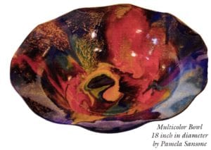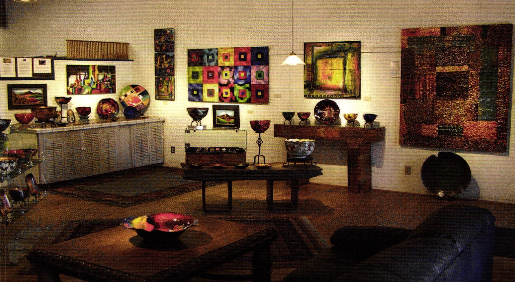 "Prior to moving to the Central Coast near Santa Barbara, Pamela's part time enameling turned into a full time endeavor. She now creates most of the bowls, plates and various other shapes. I create some as well, although I concentrate on my enamel wall pieces. We decided that instead of supplying other galleries with our work, we would open our own studio/gallery in Los Olivos, CA, a thriving little town of wine tasting tourism. It is here in Los Olivos that we have had the opportunity to meet literally thousands of people and tell them about this wonderful art form. We now have customers in 24 countries and 48 states."