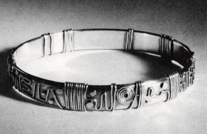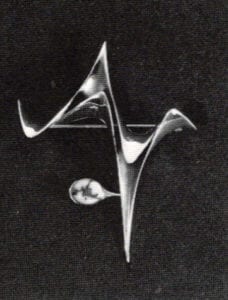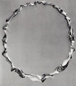 Although equipped with a very practical outlook, Prip was immediately impressed with the freedom and inventiveness of American metalwork. "What was being done in America was more interesting to me (than what was being done in Europe)—the work of Margaret de Patta, Sam Kramer, Paul Lobel, Bob Winston and Phil Morton. Most had trained as sculptors or painters or in other design areas. They were self-taught in jewelry. The technical quality of American work wasn't very good, but it was done with spirit and determination and very often with a great deal of imagination."