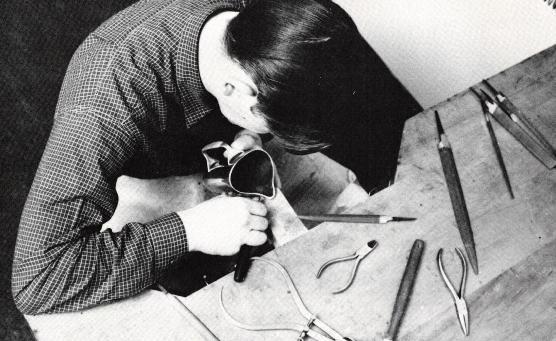 Prip had no problem adjusting to the policy of emphasizing holloware, although he did experiment with jewelry. "My background was mostly holloware," he says. "There were very few sources to learn from at the time so you basically taught what you knew." The stress on holloware was further reinforced when SAC hosted two of the Handy & Harman workshops on the subject.