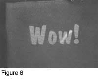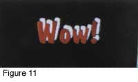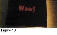 A simple example is shown in Figure 2 (left). The word 'Wow!' was drawn in red, and given a white shadow. The red and white parts of the drawing are separated (Figure 2, right) so that they can be printed out separately. The red part of the drawing is printed on a plastic sheet as shown in Figure 3.