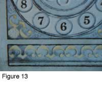 Figure 1 is an example of a clock dial that was created using this method. The design was made using a computer drawing program. Each color in the design was printed onto a separate transparency using a laser printer. Each transparency was used to make a screen, using a photo emulsion process. The resulting 10 screens were used to 'print' the enamels onto the plate. It was fired once. In this article I describe the steps used in this process.