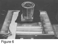 Note: The process of exposure is actually best done as shown in Figure 6. Cover the back of the screen with black cloth, then a piece of foam, and hold the whole thing down with a weight (here, a paint can).
