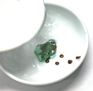 For this project, you will need a shallow Pyrex dish, Dop wax or a high beeswax candle, a lighter, a very fine diamond drill (1 to 1.5 mm at most), a flex-shaft with #30 handpiece, assorted diamond attachments in a range of diameters and grits, water, goggles, and patience.