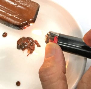 Once there is a thick enough base, melt another top coat of wax and quickly press the object you intend to drill into it. You can also "push" additional molten wax up and over the edges of the object using a popsicle stick. Allow the wax to cool completely.