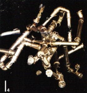 Obtaining a new dimension from existing objects, helping objects to acquire a life of their own - this is the thinking behind his "discoveries" of the 1980s. It is astounding how he manages to use waste objects and everyday items to create treasures of a high aesthetic appeal. Occasionally the new reality delivers something surreal. Pipes, light bulbs, plastic cutlery become rare, precious objects. In their uniqueness they suddenly become messengers from another world. The scampi pincer set in silver, or the tiny animal bone with its silver crown recall the origins of the art of jewelry. Only an experienced goldsmith with an assured feel for dimension and vibrancy could create images such as these.
