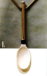 Pendant, 1986, plastic spoon, brass pipe
