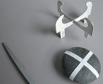 First, find a beach stone exactly like the one shown here. Obviously, I'm kidding. Throughout the project, pay more attention to the concept than the particular shapes I'm using. You might use a pottery shard or a marble - the whole idea is to let the materials influence the design.