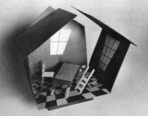 A political interpretation of the houses is also possible. Although Kluge's images are universal rather than stereotypical, the feminist issues raised by her use of the house and domestic objects are inescapable. Since the early 1970s the house, housewife and domestic objects have been used in feminist art and literature to focus on socio-political and economic issues in the lives of American women. During the 1970s, in both the fine arts and mass media, the house/housewife was a metaphor for women's fate and biological and economic struggle. In the 1980s this same image became an icon of domesticity - an image of security and the object of nostalgic yearning for the lost American dream. Suburban and domestic imagery was found in the art of both men and women. What was originally a feminine stereotype became genderless. Kluge's houses reflect this change and can be attributed to the multi-level meanings and readings that she encourages in her work.