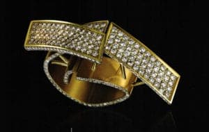 This year's winning piece by Joyce Coetzee is a yellow gold bangle created by using 668 diamonds. She described her inspiration as follows: "Through the swirling, gaseous fissures emitted by the volcanic vents I stumbled upon a thing of beauty so mystical and divine, so by chance, it almost passed me by, that I wondered where this discovery would lead me"