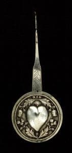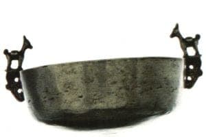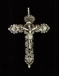 A third style that courses through Andean silversmithing during the colonial era is filigree, a technique often employed by Jewish and Arab jewelers in Portugal and Spain in the fifteenth century, although filigree objects were crafted throughout the Mediterranean as early as classical Greece and the Etruscan period. In South America, the pre-Conquest artisans of the Quimbaya, Sinú, and Muisca cultures of the northern Andes produced surface-decorated, cast-filigree objects in gold and tumbaga, but true filigree work, using draw-plated gold or sliver wire to create an openwork design, appears to have arrived with the Iberians. In colonial Peru, gold and sliver filigree was employed in jewelry making and to craft crowns and attributes for saint figures. In the late colonial era, some large pieces, primarily animal-form incense burners, were created in silver filigree. This work is associated with the Ayacucho region, and the Lanao family in particular.