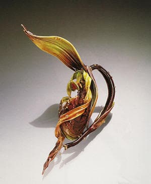 | Study of Carnivorous Pitcher Plant (sculpture), 2001 24k and 18k yellow gold, fine silver brass, copper, enamel 7 x 7 x 7″ Photo: Barry Blau |