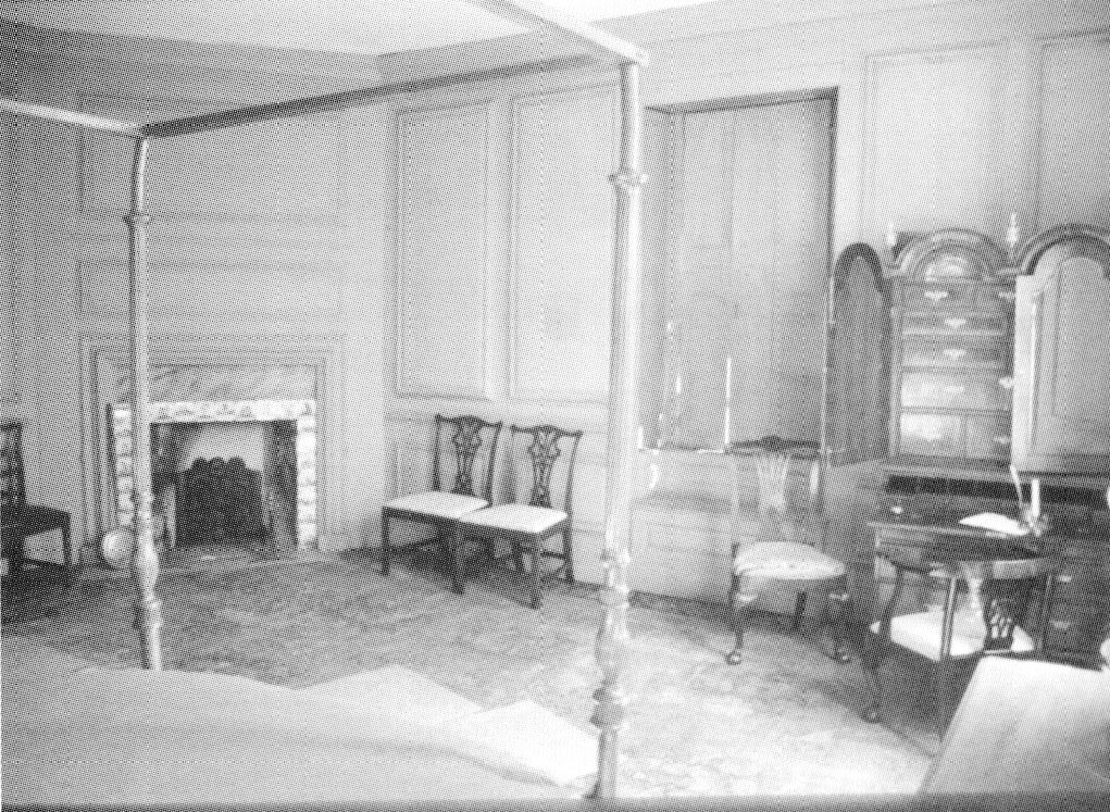 The parlor bedchamber was the most important of the upstairs rooms in the eighteenth century. It was directly above the parlor, and usually had the same large proportions. In the case of the Warner house, it also had the same ornately molding wood paneling (Fig.3).