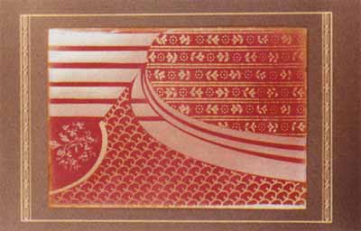Let first decal dry a few minutes if the next decal is directly next to the first. You may then add the next color decal in the same manner as above. Now you will have to watch that water doesn't seep under previous decal. If it does, just re-squeegee it flat and continue. You will have to let the decals dry a bit in between additions and be careful not to have too much water on surface which then makes a mess of previous decals. Sounds complex but really it is easy after you practice. The secret is in the touch. Clip some practice pieces and try firing on the back of old work until you are comfortable with it. Remember that you are looking for a plaid effect (like figure 2) when you are placing your next decal strips. This will allow you to see just what the luster will look like over the various colors of enamel underneath.