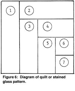What you wish to achieve here is to develop working knowledge and technical eye/hand skills. Especially if you have never worked with decal material previously. If you have difficulty with planning a design, I would suggest using a quilt type or stained glass pattern which could incorporate the colors you wish to use (see figure 6).