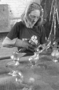 Maria began with a small plastic chicken, about 8″ in height. She began to refine and reproduce that plastic chicken in brass, to modify it in a variety of ways and ultimately to cast and chrome plate her chicken. She made a flock of over 40 chickens in total. All of this had to be done in concert with the industrial production that was scheduled. The pace of the industry did not alter because there were artists underfoot! It takes a bit of an adjustment for both the workers and the artist. The artist does not work within the same time constraint that the worker does. There are three different shifts that go on at an industrial production plant, and a worker has to produce a given amount of work. The workers must meet the production schedule and make a living. The artist, on the other hand, does not have the same hourly time limits, but must make allowances for the people who do. There is a lot of give and take between the working partners It is necessary to understand the rhythm of the work on the floor in order to participate in the process.