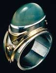 | When Holly Lee learned gem cutting, the cabochon became her personal favorite because of its "meditative quality." This ring uses a cabochon of greyish moonstone. |