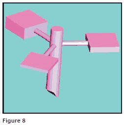 The metal will fill the pattern before the secondary feed sprues start to fill. The last point to fill will be mid-point of the secondary feed sprues. Figure 6 shows a more balanced feed sprue system in which the metal will flow to the top of the cross in about the same time it flows to the arms of the cross and the last points to fill will be mid-arm on each side. Notice that the attachment point to the main sprue is different than that in Figure 5.