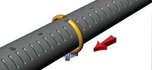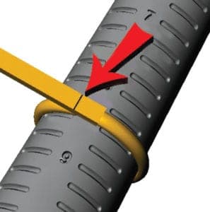 Quench the ring in water, then slide it onto a mandrel. Pull the ring to the appropriate size and use a scribe to mark where the sizing stock overlaps the open end of the shank.