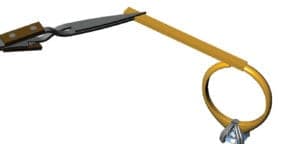 I like to make my own sizing stock, preferring to use long square or rectangle pieces. These will work on almost every type of shank and are less wasteful than trying to make stock for different ring profiles. Take a piece of stock that is close to the cross section of the ring being sized. Cut a small chip of solder and lay it on a soldering block (the chip should be about the same size as the cross section of the ring). Heat it with a torch until it balls up. Holding one end of the stock with soldering tweezers, add a drop of flux to the other end of the stock and then apply heat and join the stock to the ball of solder.