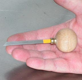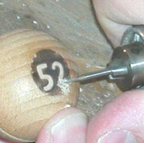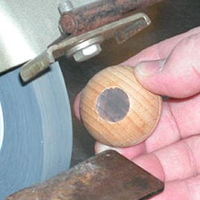 For easy identification after the graver is mounted, grind a small flat portion on the back of the ball handle. Let the grinding process "burn" the surface of the wood making it dark.