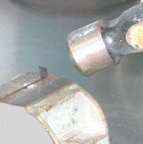 Place the graver assembly into the vice, exposing the tip that's to be removed. Using a hammer, break the tip of the graver off. For this step, MAKE SURE TO WEAR safety glasses and strike the tip in a direction away from yourself. Do not do this in a room with other people.