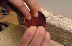 The cup is now gently opened with the fingers. The curve is set equally on each side of the central fold edge.