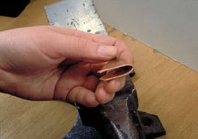 The cup is now opened with the fingers and shaped to suit. Avoid using tools to pry it open as this may cause unsightly dents. If you have to use tools when doing this with stiffer metals like sterling or 14k gold then use flat, blunt wooden or plastic tools so as not to damage the metal surface.