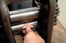 This is now malleted tight again. The fold is ready for rolling. Your limitation on size is going to be the width of the mill.